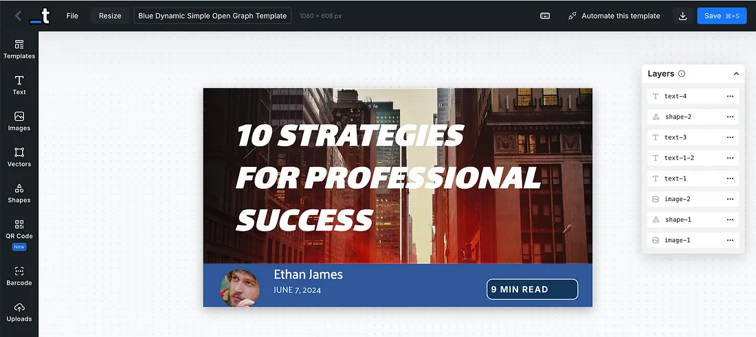For this particular tutorial, I will use a template from the Templated’s gallery only; however, if you have the base template already built in some other software (like Canva), you can use that as is in the editor and add layers over it, which you would like to automate.